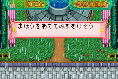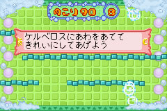 小可还真是够调皮的,小樱帮它洗澡,它竟然还跑来跑去?!玩家在只要在规定时间内帮小可洗玩规定的次数的澡就可以了,按A键为跳,B键发动泡为小可洗澡。 |